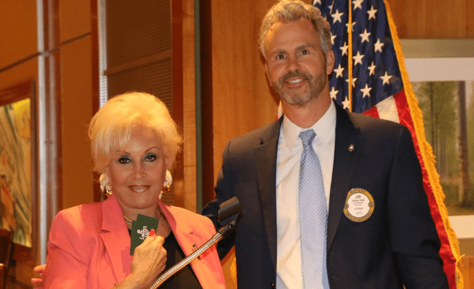- Josh Lamers spoke about Katie Decker’s recent retirement as principal of three elementary schools; followed by PP Randy Campanale and PP Jim Hunt expanding on the LVRC’s partnership with Katie and her schools these past two decades; Katie thanked the speakers, the Club and other organizations that made all the successes possible; President Jim then presented Katie with Club gifts (including a custom crystal glass sculpture that Janice Lencke was able to procure, and a luggage set for Katie’s future travels) to commemorate her accomplishments; Paul Maffey announced that the Club was awarding Katie with her Paul Harris +2; Rosalee Hedrick then inducted Katie as a new member of the Club;