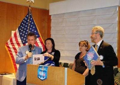 - Shannon Brown, Beckley ES Principal, presented the hand-painted tile, dedicated to the LV Rotary Club, which will be placed in the front area of the school with other tiles, as a permanent ‘thank you’ to our Club and its members for all that we have done for the school and its kids; and Michael Williams shared some amazing student statistics (documented increase in reading word speed and comprehension) of our impact on involvement with the Books With Buddies and Spread The Word Nevada program(s).