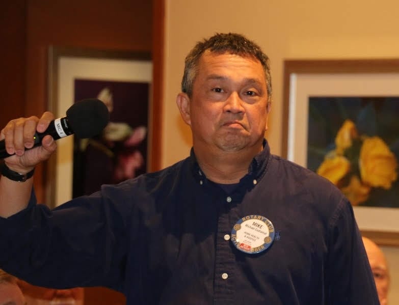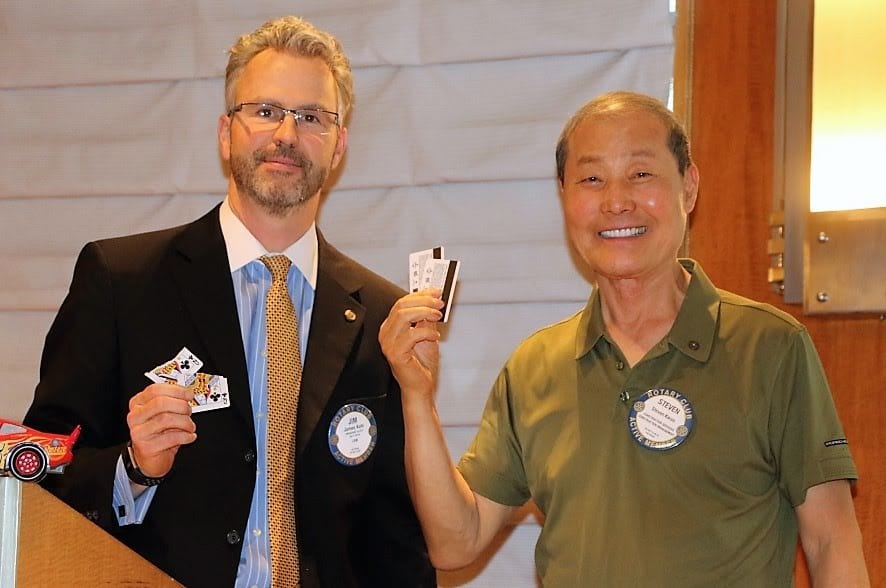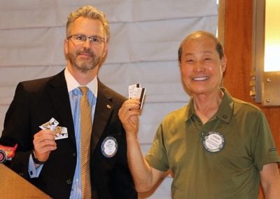 - President-Elect Jim Kohl called the meeting to order. PP Mary Ann Avnet gave the invocation, a wish for leaders. Jerry Engel led the club in singing a combination of America The Beautiful and God Bless America, followed by the Pledge of Allegiance. The Sergeant at Arms was Arwin “Mike” Cudiamat.