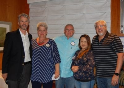 Janice Lencke recognized AE&ES owner Gary Bordman and Owner Walter Carnwright and Lani Lopez of AGR for their support for our fundraiser Cuisine & Octane