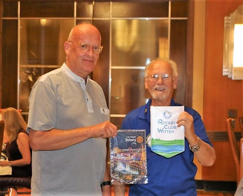 - Deb Granda reminded members the Halloween party is 10/26 at The Distillery, with auction items, including a basket of wine and a 4 hr rental of an exotic car, as well as other great items, costume contest, and great food, with all proceeds going to the canned food drive; Jaime Goldsmith reminded members the Wine2Water event at Total Wine is coming up November 15th ; Marie Walsh reminded members Breakfast With Books on 11/13 and a new project The Little Library to be placed at Beckley, thanking Randy Donald for the 2 ‘little houses’ where books will be an exchange (give one/take one); Beckley Vice Principal Cheryl Trupp announced the success of the Harvest Festival, raising $6500, and introduced a new school coach, Daniel, a former Ambassador, sponsored by a Rotary Club in India; Deb Granda reminded members the Holiday Party is 12/6 at Treasure Island; and PP Michael Gordon was fined, modestly admitting he was recognized with two awards in Achievement In Service at UNLV
