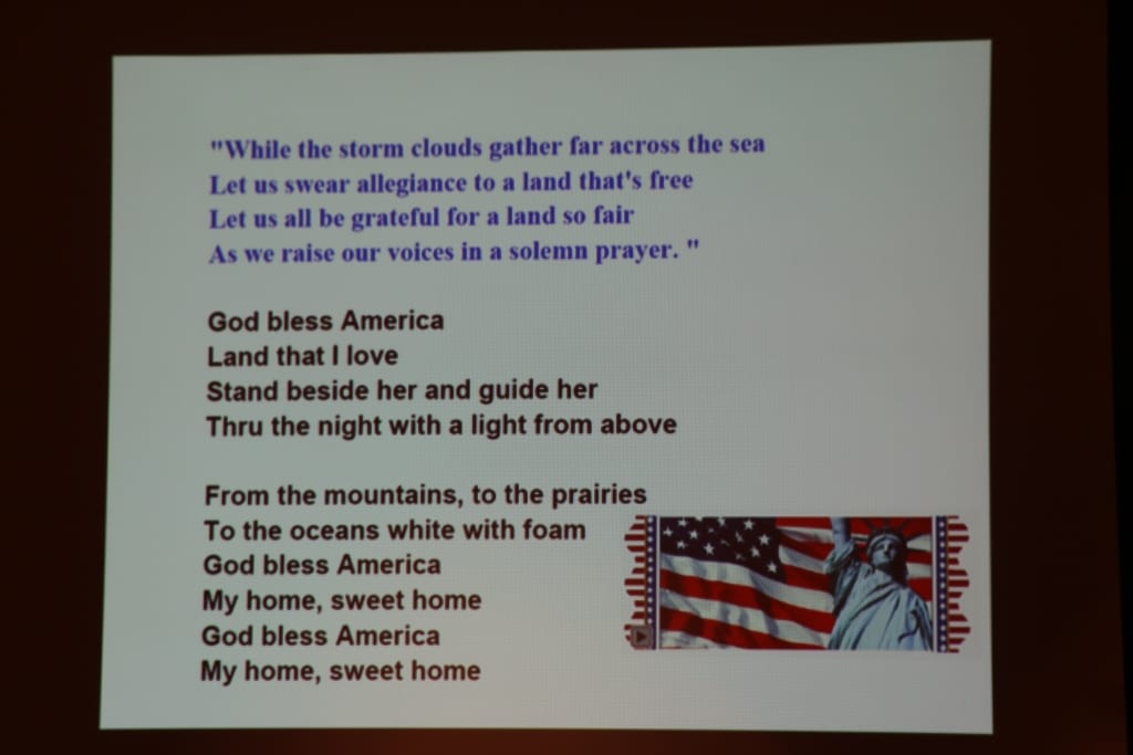 - Jerry Engel led the club in singing “God Bless America”, followed by the Pledge of Allegiance. President Jackie then led the club in the Four-Way Test;