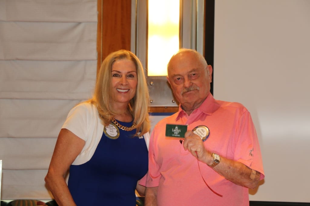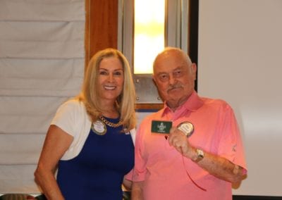 - President Jackie presented our speaker with a “Share What You Can” award to benefit the local USO and then adjourned the meeting.