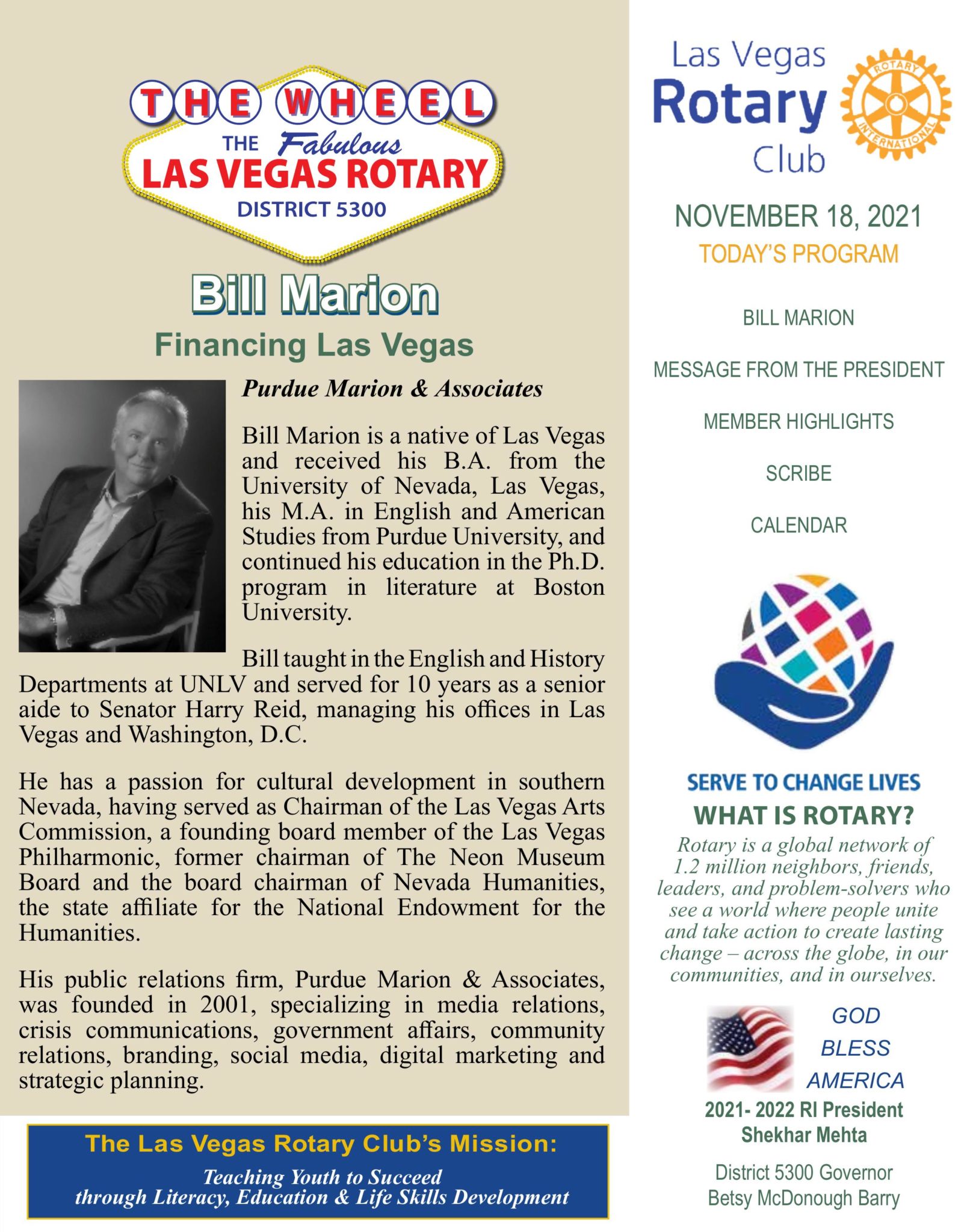 The Wheel for November 18, 2021 by Las Vegas Rotary ClubNov 18, 2021The Wheel0 comments The Wheel Download ← Previous Week Following Week → Submit a Comment Cancel replyYour email address will not be published. Required fields are marked *Comment * Name * Email * Website