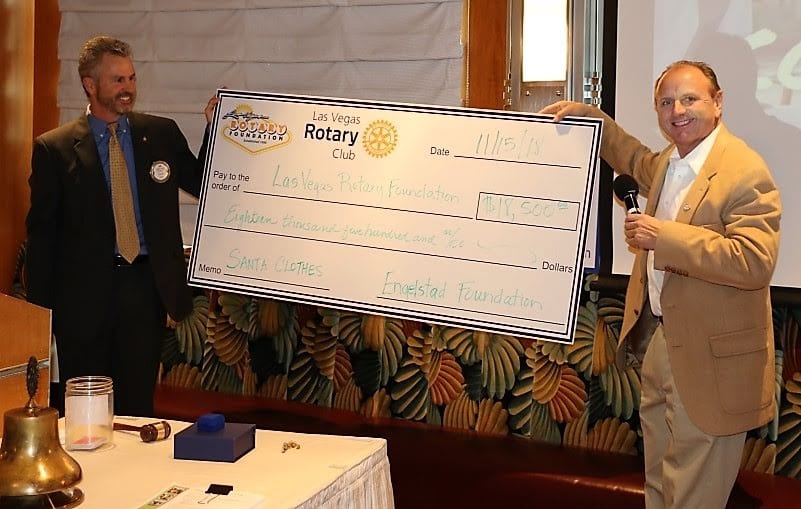 - President Jim and Gwen Mullins of Howard & Howard presented a check for $5,000 to Dave Sanberg of Sunrise Foundation on behalf of the LVRF and Howard & Howard;