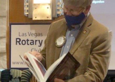- PP Caty Crockett introduced our speakers Donald Snyder and Myron Martin. Mr. Snyder is a local businessman and philanthropist, Mr. Myron is CEO of the Smith Center. They delivered a presentation on the history of the founding of the performing arts center in Las Vegas. They also announced that they are confident that the Smith Center will be reopening, but there is no timeline. They did cancel this past season and furloughed/laid off 75% of their staff. But they are working to bring performance back to town, including Hamilton.