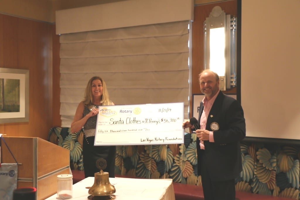 PP Jim Hunt and President Jackie displayed the check for $56,700 that will be given to JC Penny’s for Santa Clothes.
