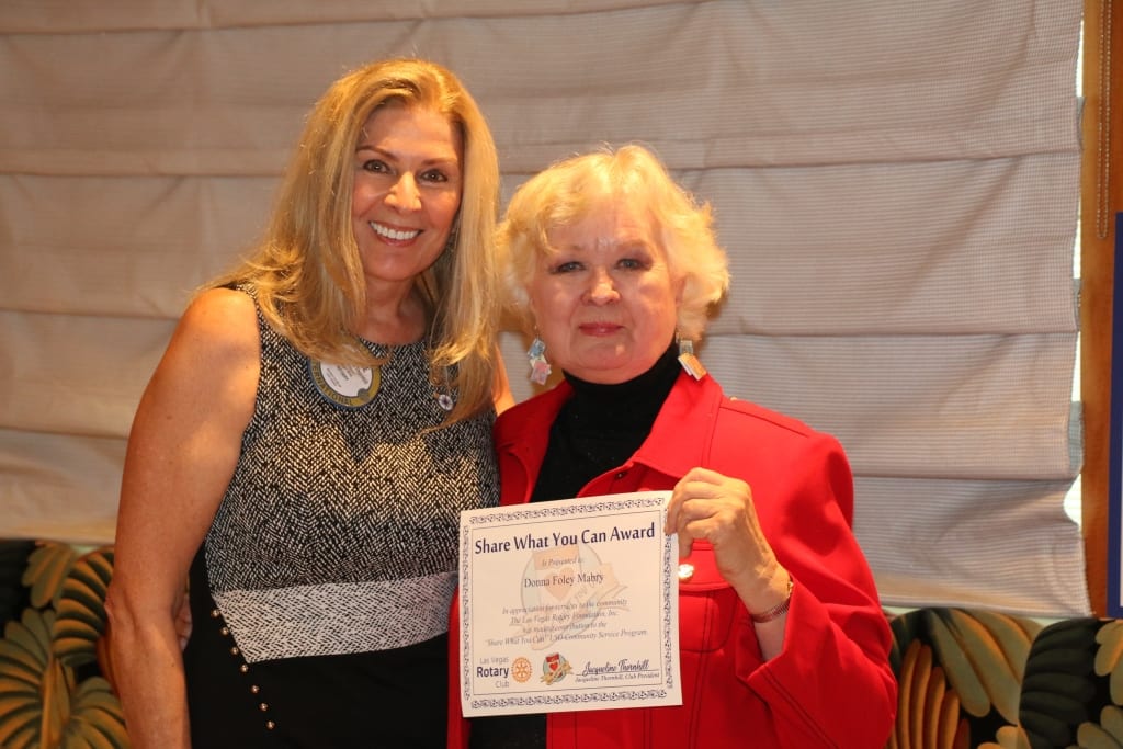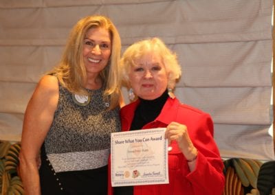 - President Jackie presented our speaker with a “Share What You Can” award to benefit the local USO.