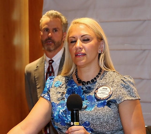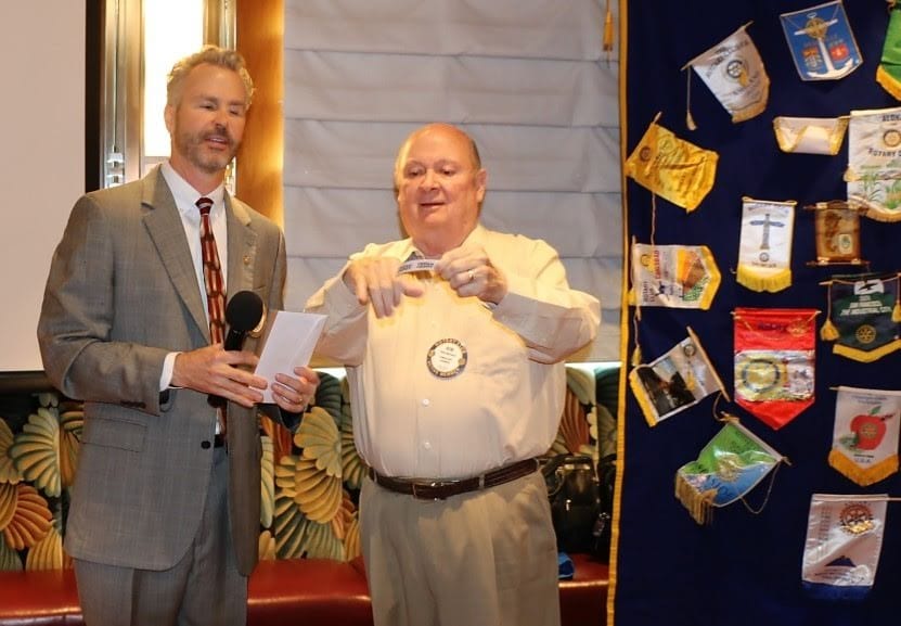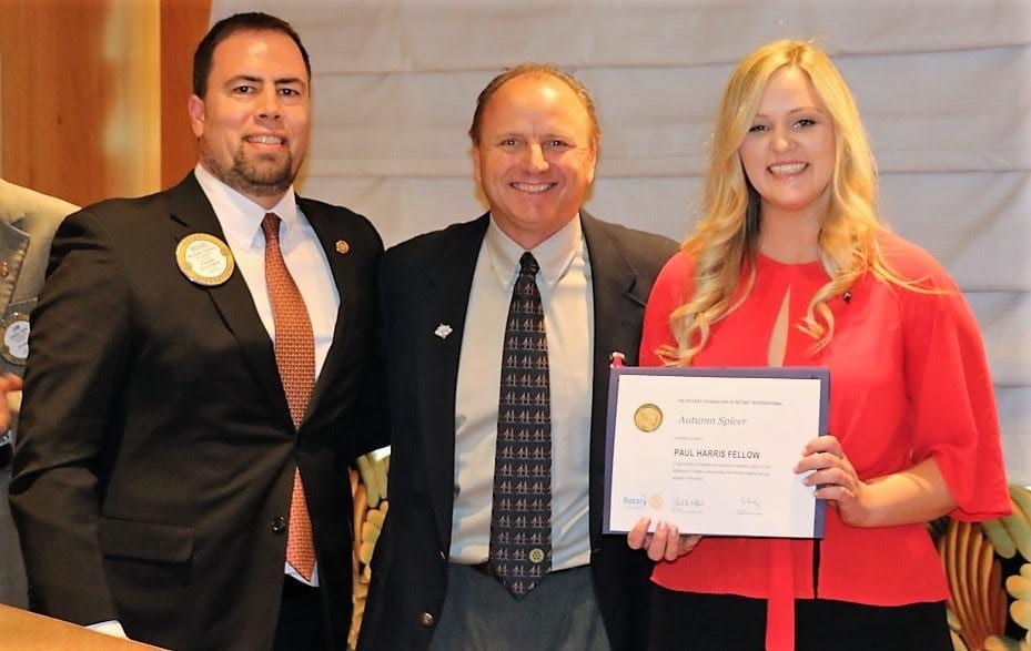 - PP Jim Hunt presented a special and well-earned Paul Harris Fellow to former UNLV Community Relations, now with the LV Aces team, August Spicer; Paul Maffey provided a history of J A Tiberti and the Fellowship created and how more members can join the current 131 Tiberti Fellows, with Jerry Engel explaining ways to donate;