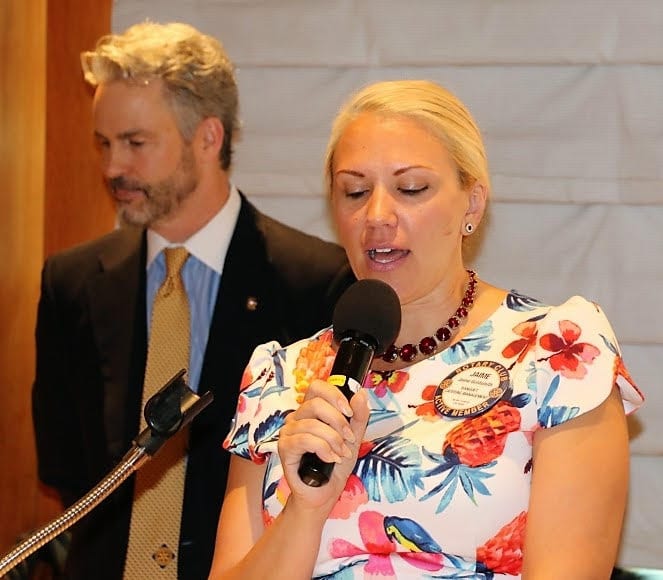 - PP Tom Thomas introduced our program speaker, Kristy Keller, currently with the Moonridge Group, after a rewarding and successful career with the Clark County School District, describing the work of Moonridge Group helping direct funds by donors and specifically the work of a client, Nevada Medical Center (NVC), a non-profit, dedicated to improving the quality of and access to health care in Nevada, for locals and tourists. She described NVC as a form of the synergy of experts in and out of the healthcare field. A focus of NVC is the Global Science of Play, explaining the value of play in relation to mental health and the benefits of play for all, especially children. Ms. Keller provided examples