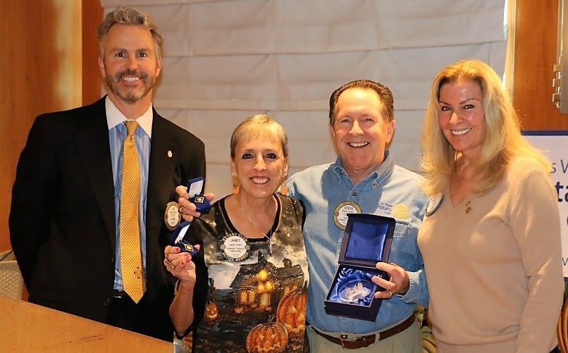 - A special presentation by PE Jackie Thornhill was made to Janet and PP Steve Linder for becoming Paul Harris Major Donors, contributing $10,000 each and receiving the special Major Donor designation pin.