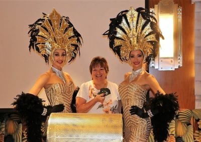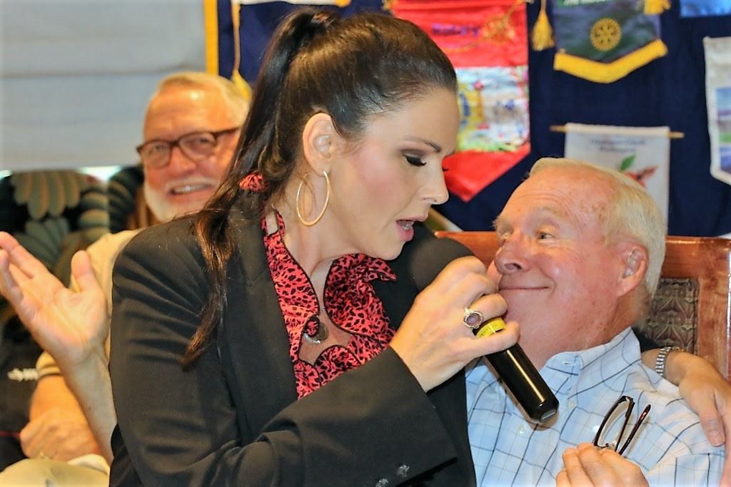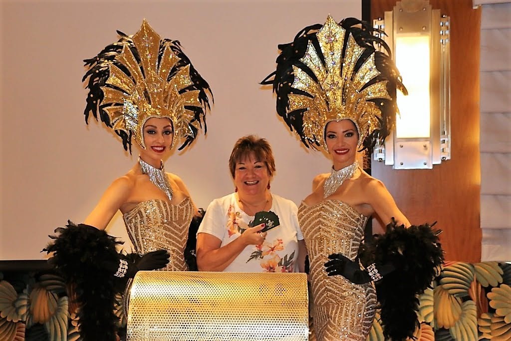 Rotarian of the Month Deb Granda was joined by our visiting Showgirls and with the help of our speaker Patrick Miller, pulled the raffle winners name. Plus she won some Lawry’s Bucks.