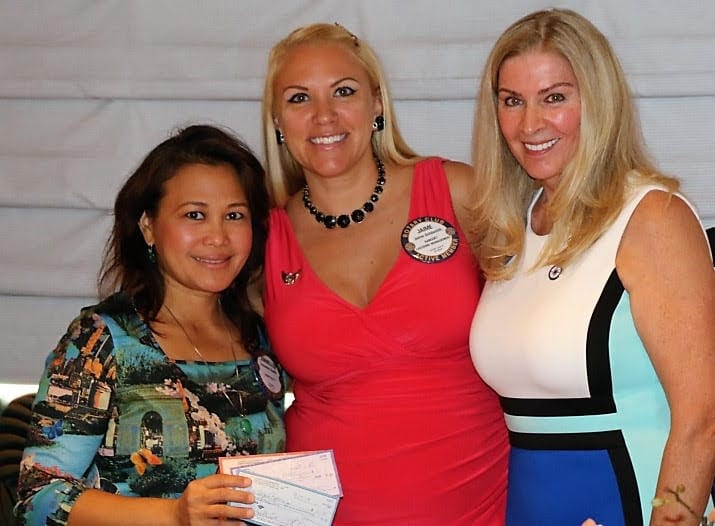 Jimmelle and President Jackie receive checks from Jaime Goldsmith for Canned Food Drive Fundraisers.