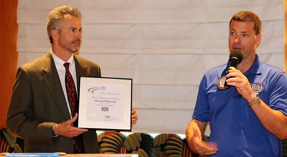 - President Jim presented a check for $5,000 to PP Dave Thorsen for the USO on behalf of Howard & Howard and LVRF and PP Dave presented a Silver Donor Award to Howard & Howard for their support and generosity