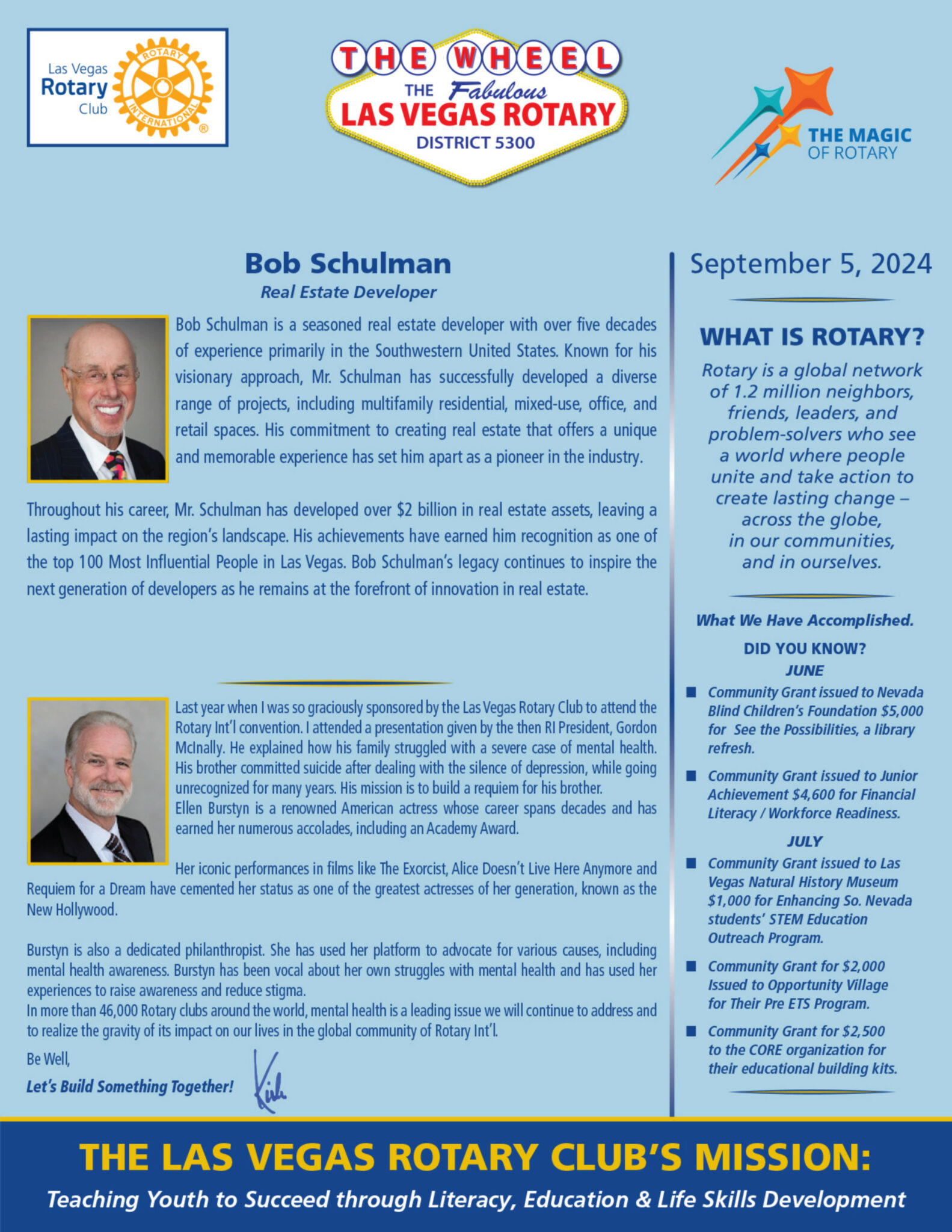 The Wheel for September 5, 2024 by Las Vegas Rotary ClubSep 5, 2024The Wheel0 comments The Wheel Download ← Previous Week Following Week → Submit a Comment Cancel replyYour email address will not be published. Required fields are marked *Comment * Name * Email * Website