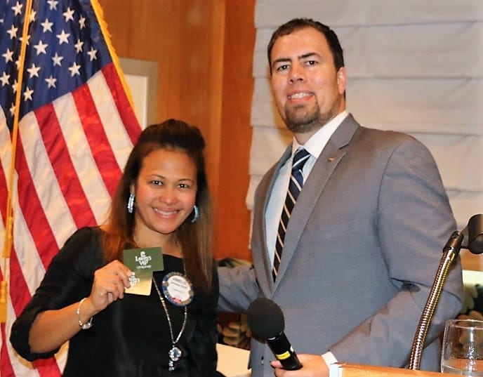 - President Michael Gordon presented Arleen Sirois with a check for $6,824 for winning the raffle drawing. The other half went to the LV Rotary Foundation.