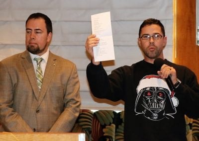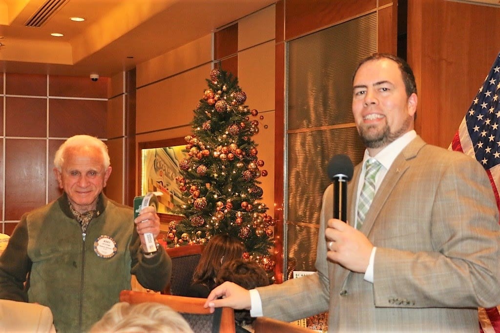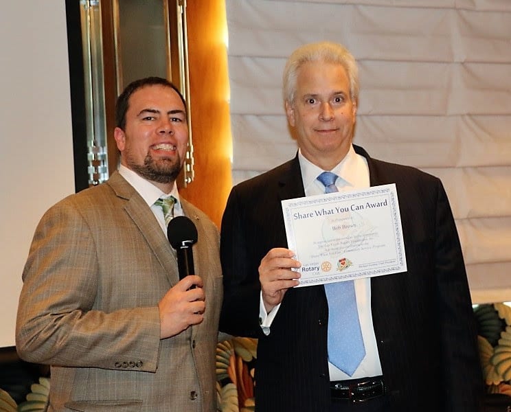 - President Michael Gordon presented our speaker with a “Share What You Can” award to benefit a veteran in need and then adjourned the meeting.