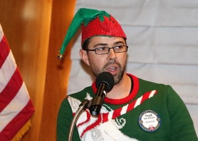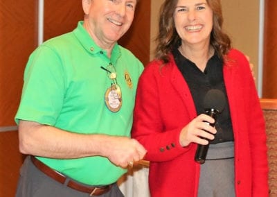 - PP Steve Linder presented the new Rotary logo for the Aviation Museum – thank you to Bill Houghton; Jaime Goldsmith, on behalf of Treasure Island, provided beautiful holiday centerpieces for our last lunch of the year, which members were able to take with them; Randy Kinnamon announced a successful toy drive, gathering toys to serve over 1000 families, and thanked Club members for helping with distribution; David Squier said the recent Highway Clean Up on December 16 th was successful and a good time spent with others and a great brunch at Jerry Sennes’ home; Michael Williams reported a great success and participation at Opportunity Village Magical Forest, even though President Michael did not get assigned the hot chocolate station.
