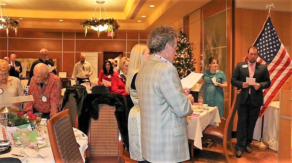 - President Michael Gordon called the meeting to order, after which we were reminded of the many amazing projects, events, contributions and activities our Club and its members were involved in during the year and just how grateful we are. Arleen Sirois gave the invocation. Stu Lipoff led the club in singing our National Anthem, followed by the Pledge of Allegiance. The Sergeant at Arms was PP Steve Linder.