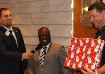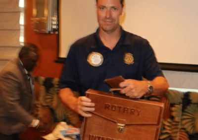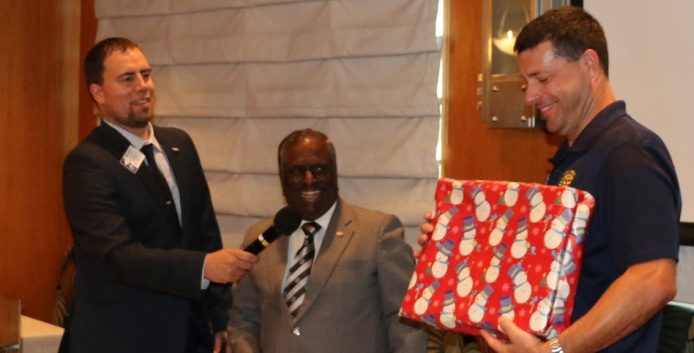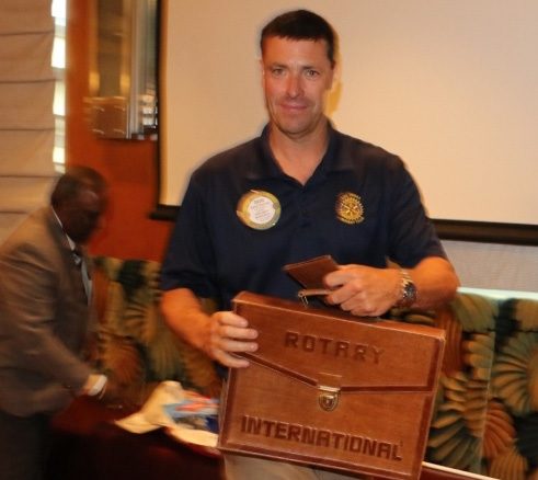 - PDG Rampur Viswanath presented PP David Thorson with a Rotary International brief case.