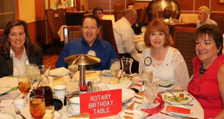 Smiley faces at the July Birthday table: PP Kathy Dalvey, PP Steve Linder, Arleen Sirois and Deb Granda.