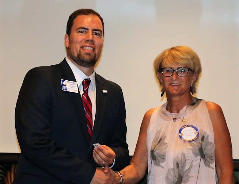 - Jackie Thornhill presented the following members with Paul Harris Fellow pins: PE Jim Kohl, Rob Telles, Rosalee Hedrick, Gwen Hall, PP Randy Donald, PP Russ Swain and PP Sharon McNair. PE Jim Kohl presented his two boys with PHFs. Kirk Alexander presented a PHF to Kirk Holmes. Deb Granda presented a PHF to Deanna Patton in the name of our late beloved member Bob Patten.