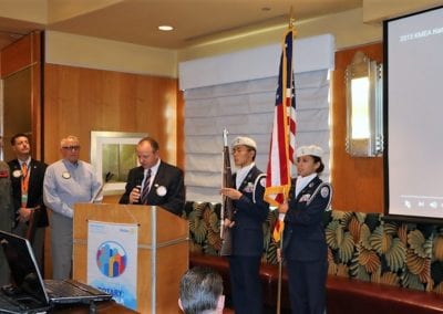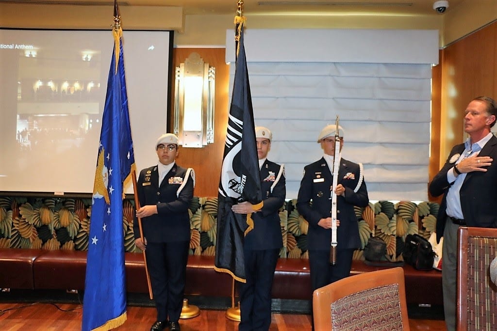 - Ted McAdam kicked off the Veterans Day Celebration with the Palo Verde Color Guard and presentation of colors. Bill Stieren gave the invocation. PP Jim Hunt introduced a video presentation of a Choir of 500 students singing our National Anthem, followed by the Pledge of Allegiance. The Sergeant at Arms was Kim Nyoni.