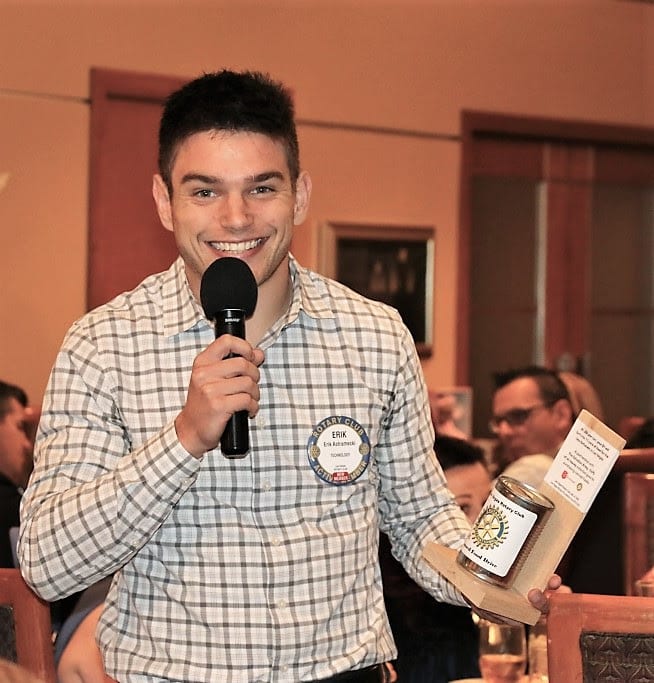 - Erik Astramecki announced the current amount in our Canned Food Drive is over $6,383 and donations will wrap up at the November 22nd meeting. He also mentioned a partnership with Smiths that would donate a portion of gas points earned to the Food Drive and to contact him for the form to participate in the program and add to the money raised.