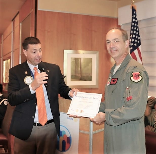 - Past President David Thorson presented our speaker with a “Share What You Can” award to benefit a veteran in need and then adjourned the meeting.