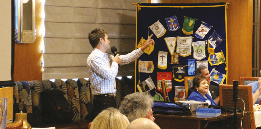 - President Michael Gordon presented our speaker with a “Share What You Can” award to benefit a veteran in need and then adjourned the meeting.
