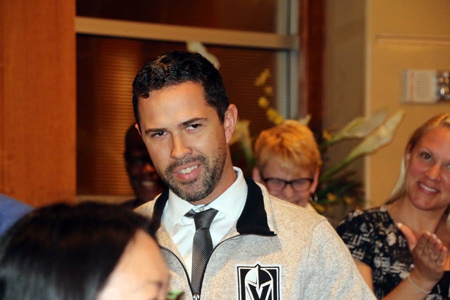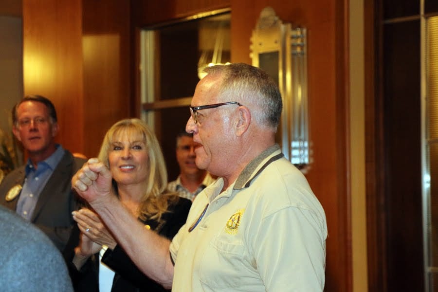 - Blake Myers gave the invocation. Bob Fisher led the club in the Marines Hymn, “Halls of Montezuma” and the US Navy song, “Anchors Away”, only to be completed by Ted McAdam’s Air Force song, “Off We Go”, followed by Tyler Wistisen bursting into the US Army song, “Caissons”, followed by the Pledge of Allegiance. The Sergeant at Arms was Arleen Sirois. President Michael read a letter from the North Las Vegas Rotary Club donating $250 to our Club’s 1 October victims fund
