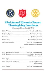 For more than 60 years, our two organizations have helped to solve the local hunger problem in our community by collecting non-perishable food items during the Thanksgiving season. While one of our organizations might claim “bragging rights” for a short while, we know that it is only through our collective effort that homeless men, women, and children receive hot, nutritious meals during these cold months.