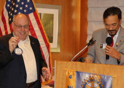 • President David Thorson introduced the speaker, District Governor Lu de Sylva, who educated the club about Rotary International and the 100 year anniversary of the Rotary Foundation. He spoke about growing Rotaract and TLC. He also, gave out “Star of the Club” awards to Deb Granda, Jaime Goldsmith, Stu Lipoff, and President David Thorson.
