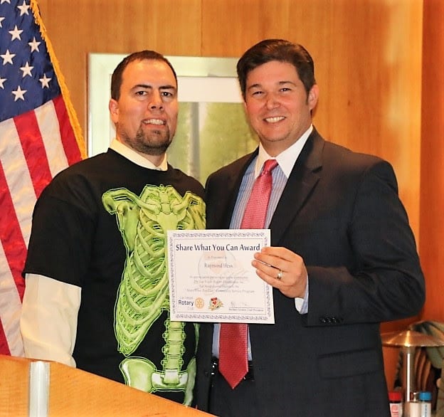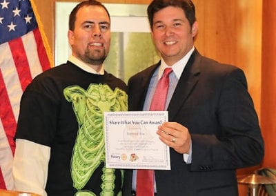 - President Michael Gordon presented our speaker with a “Share What You Can’ award to benefit a veteran in need and then adjourned the meeting.