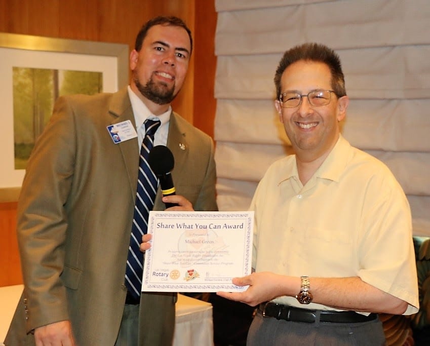 - President Michael Gordon presented the speaker with a “Share What You Can” award to benefit a veteran in need and adjourned the meeting.
