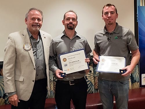 - Jackie Thornhill led the presentation of Paul Harris pins, including Randy Donald presenting Paul Harris pins to his two sons Nate and Justin. Other awardees included Walt Ruffles +1, Ted McAdam +2, Steve Dixon +4 and Janet Linder +8.